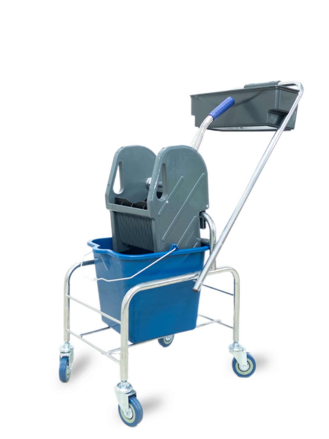 Тележка уборочная ACG БЕЗ ЛОГО 1 х 16л, с отжимом и пластиковой корзиной, база хром 1028362
