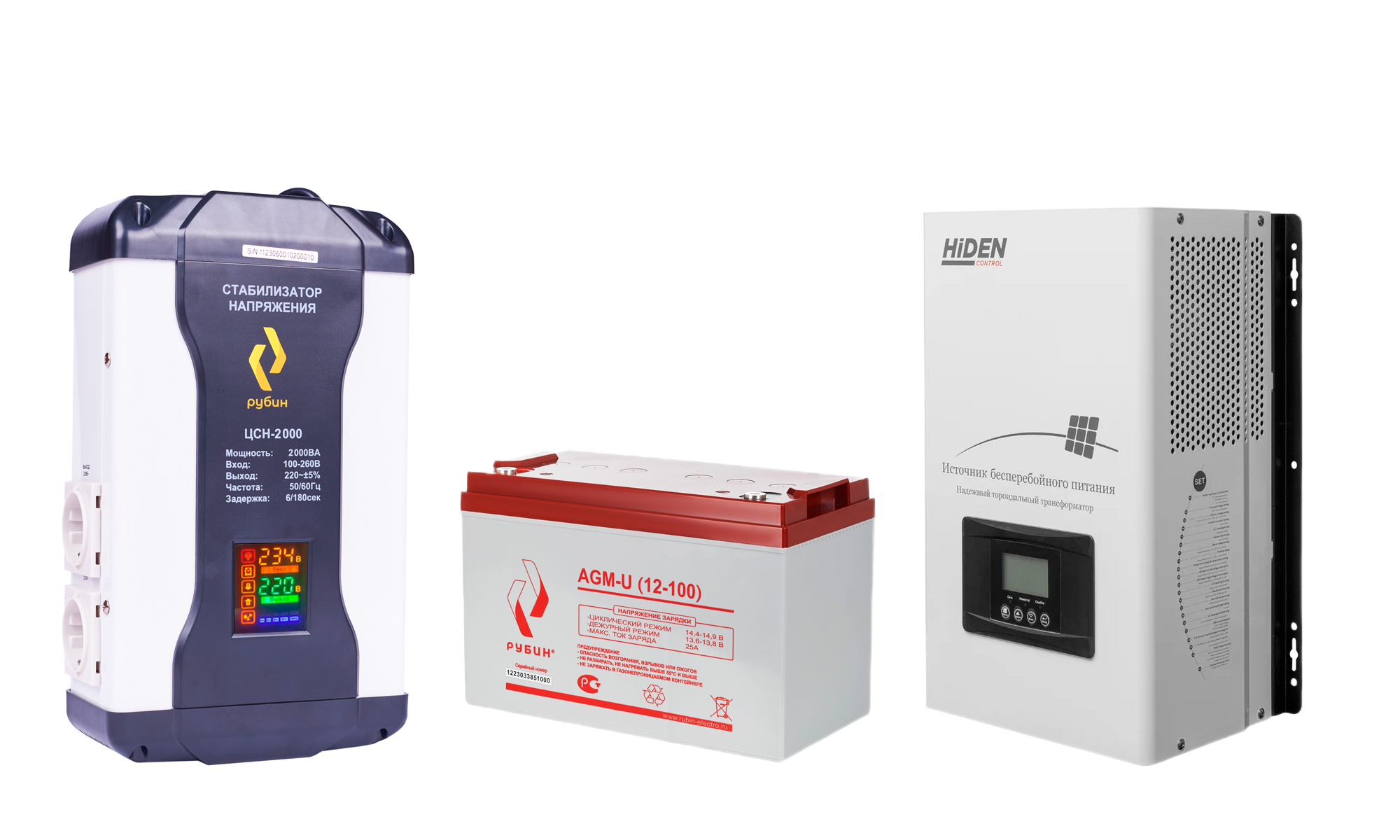 Универсальный комплект для бесперебойного питания РУБИН ИБП HPS30-2012 (12в 2000Вт) + Аккумулятор 12-100+Стабилизатор ЦСН 2000 ВА 2012/12100/2000
